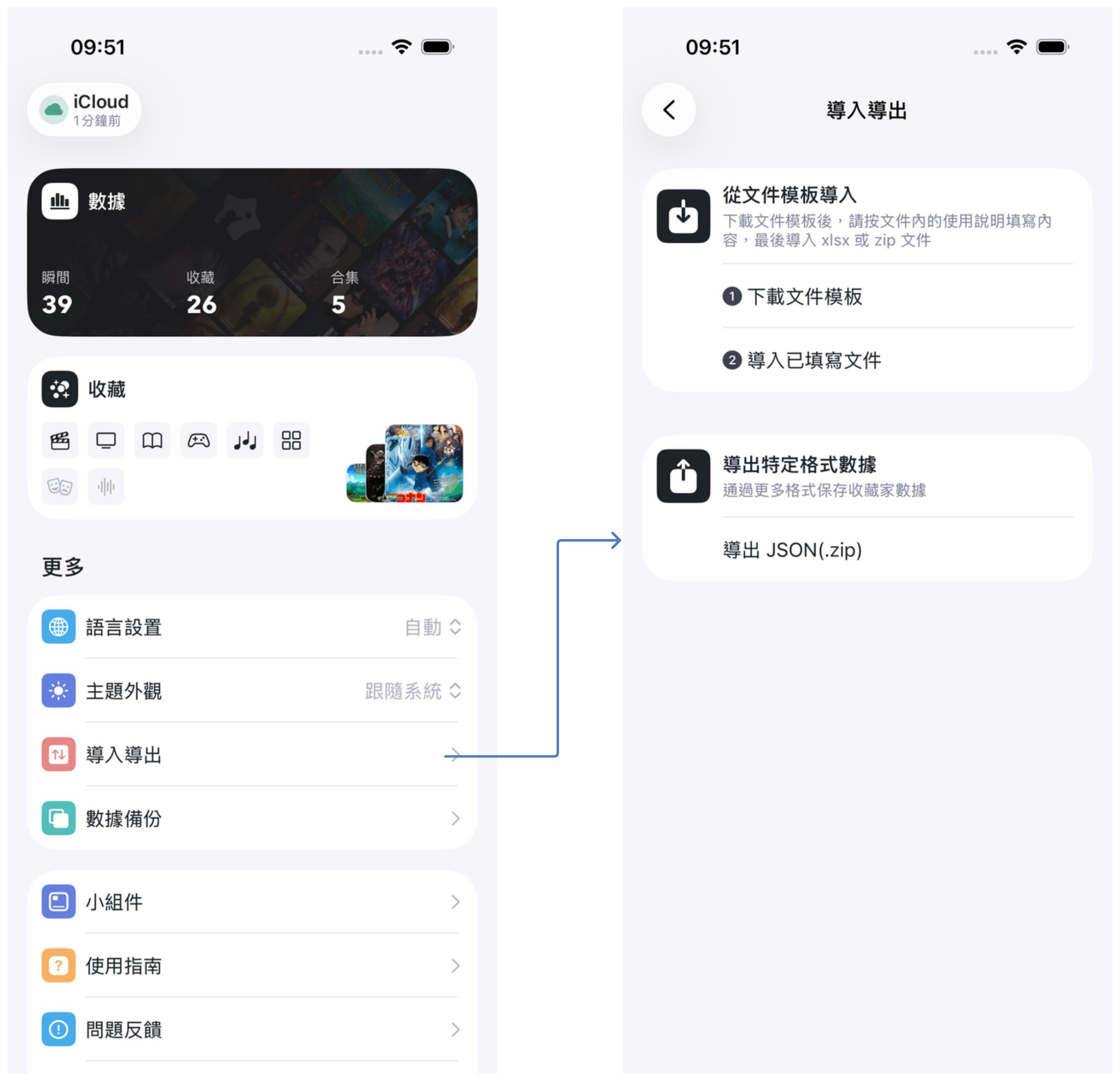 收藏家可以讓你使用文件模板快速將已有的收藏批量導入應用。
