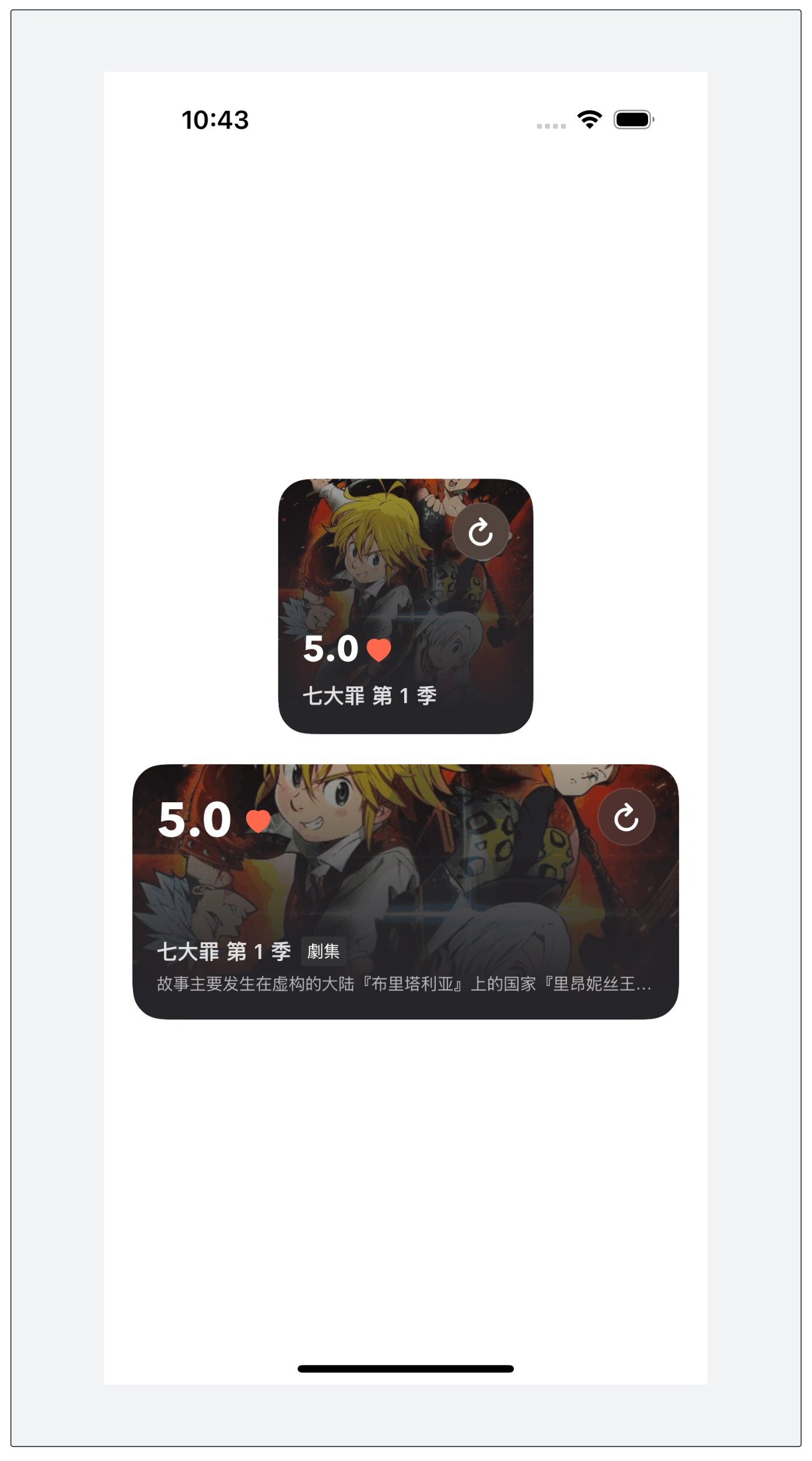 用於快速打開 App,處於主屏幕時將同步具備搜索收藏的功能,組件時不時會選取收藏封面作爲背景